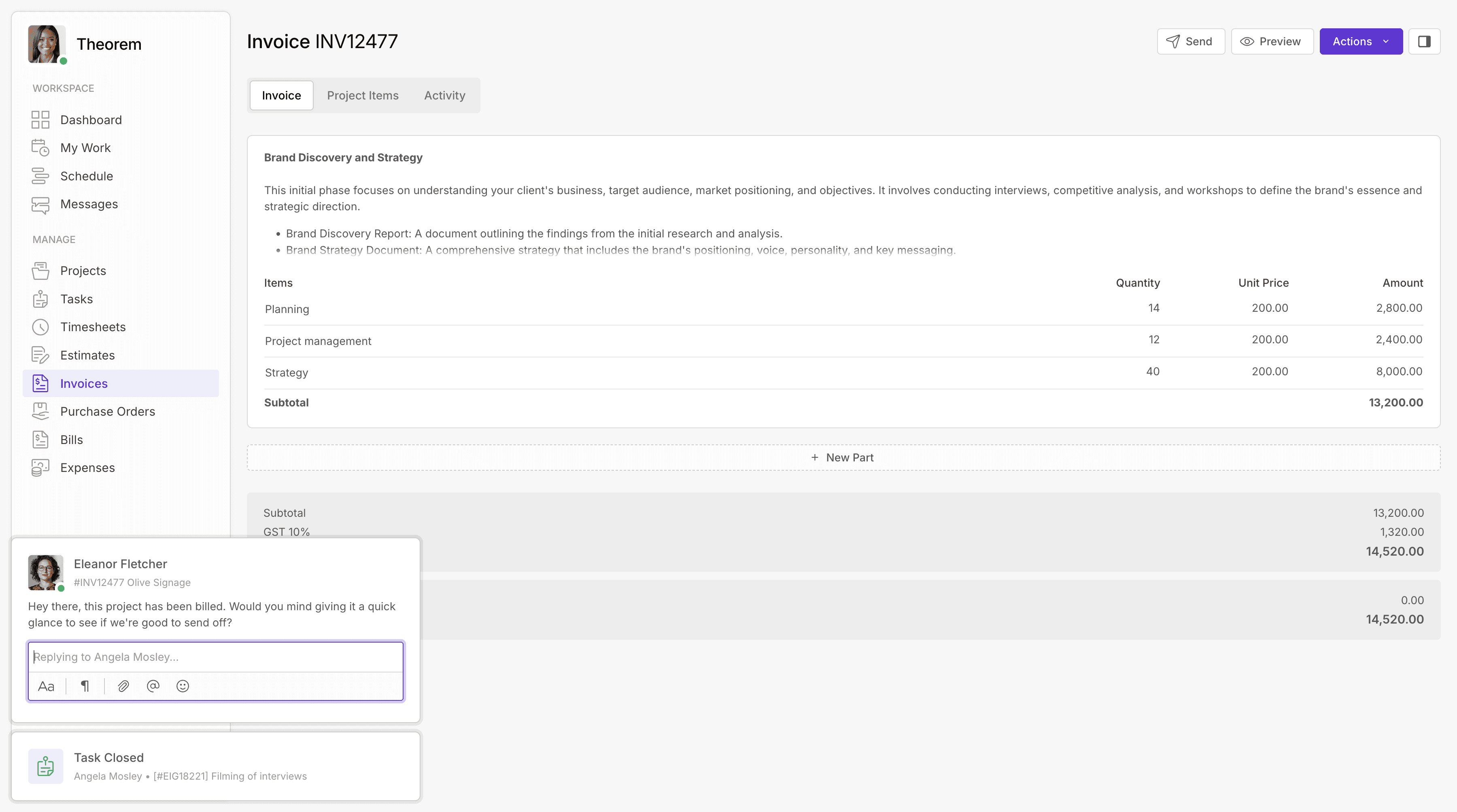 Communicate directly within projects to keep conversations connected to the work, reducing back-and-forth and keeping context clear for everyone involved.