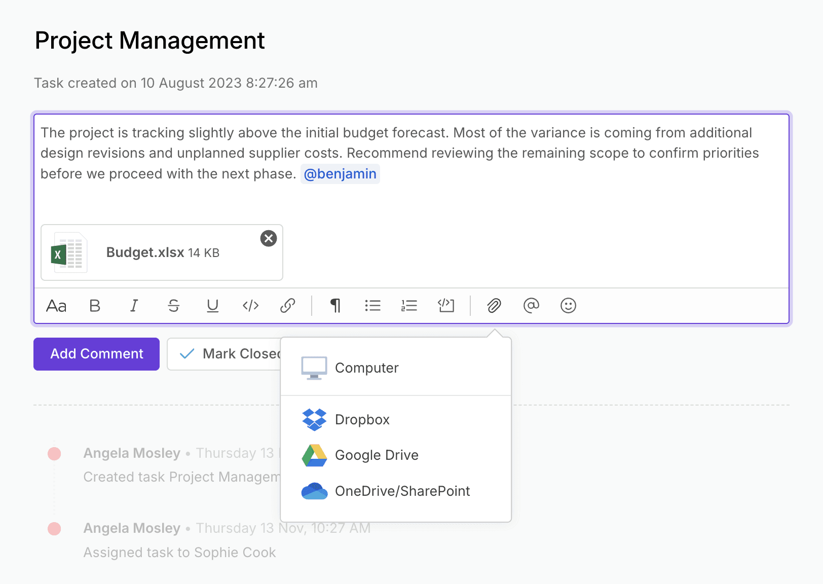 Keep project assets in one place, from briefs to visuals, making files easy to access and share.