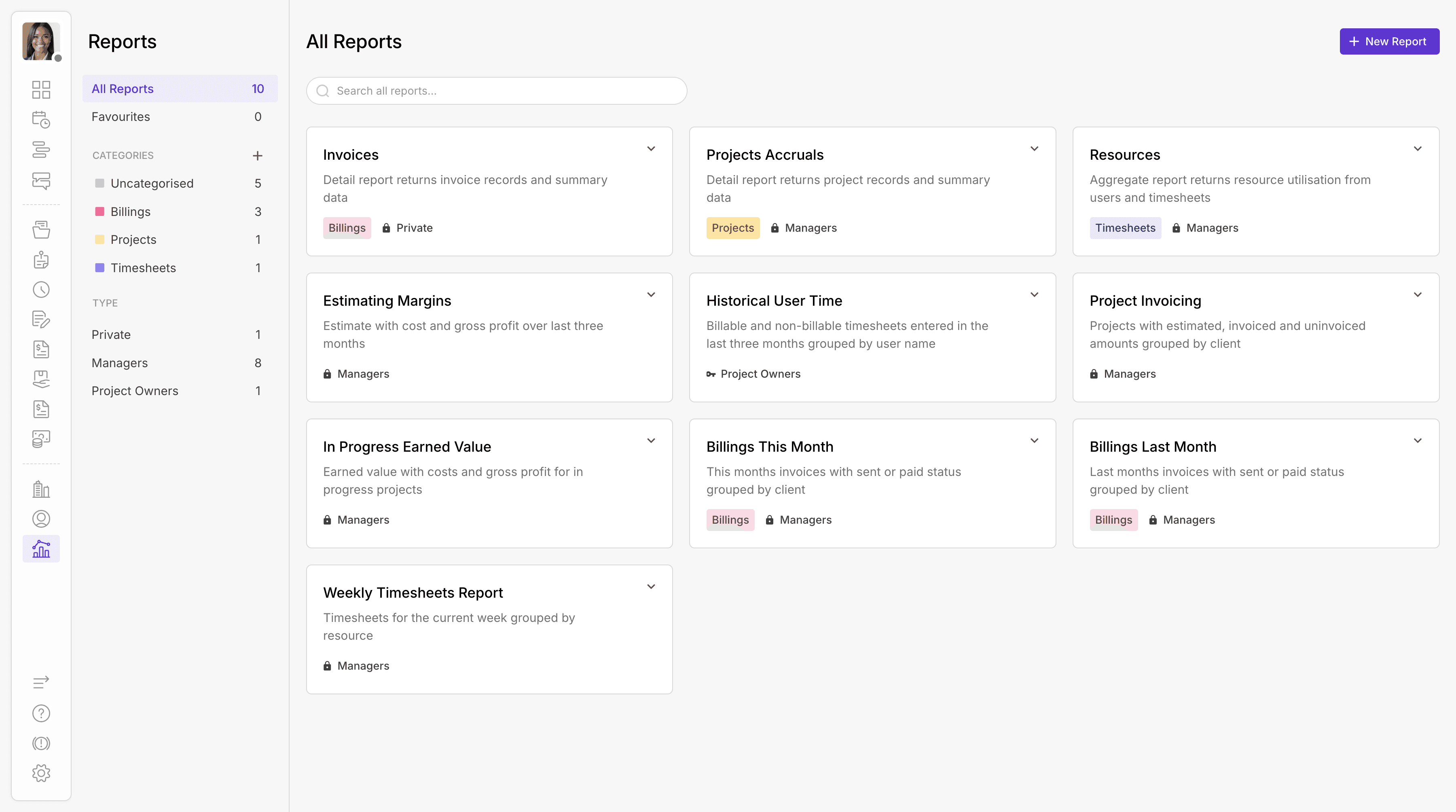 Report across all data in the system, combining time, cost, projects, and people to extract the information that matters, without being constrained by predefined reports.